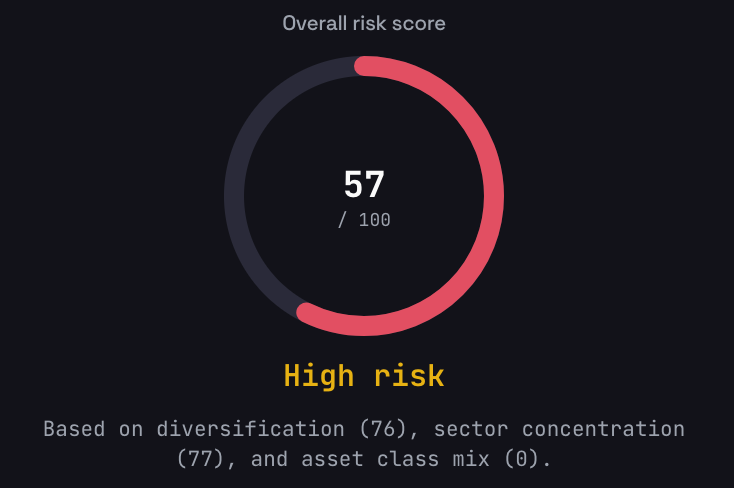 Every portfolio now has an automated diversification assessment. Open any portfolio and navigate to the Insights tab to see how concentrated or diversified your holdings are.